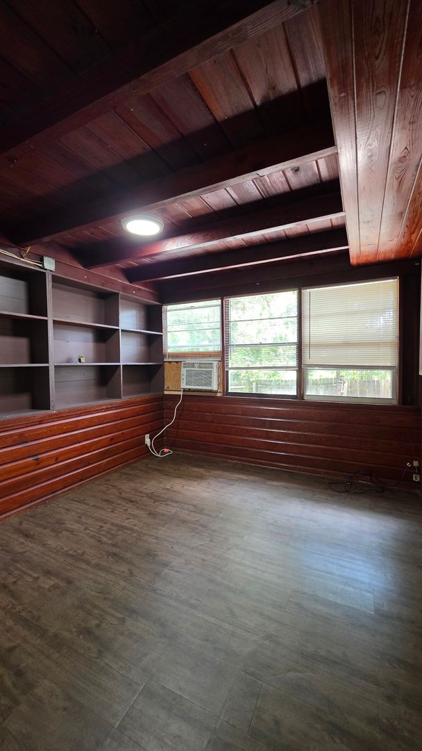 The home features a central AC system along with supplemental window units for added comfort. Washer and dryer hookups are available, and a washer is included for convenience.